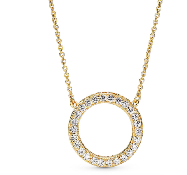 Bring the circle of love into your look with our hand-finished reversible collier necklace in 14k Gold Plated . 18k gold-plated unique metal blend. You can wear the necklace in two different ways – simply flip it to reveal either sparkling clear cubic zirconia or the iconic Pandora logo. Its the sides have been detailed with cut-out hearts and the necklace chain is adjustable to three different lengths for the perfect drop to suit any neckline. Wear it to add a touch of sparkle to your look or give it to a loved one to complete the circle of love.