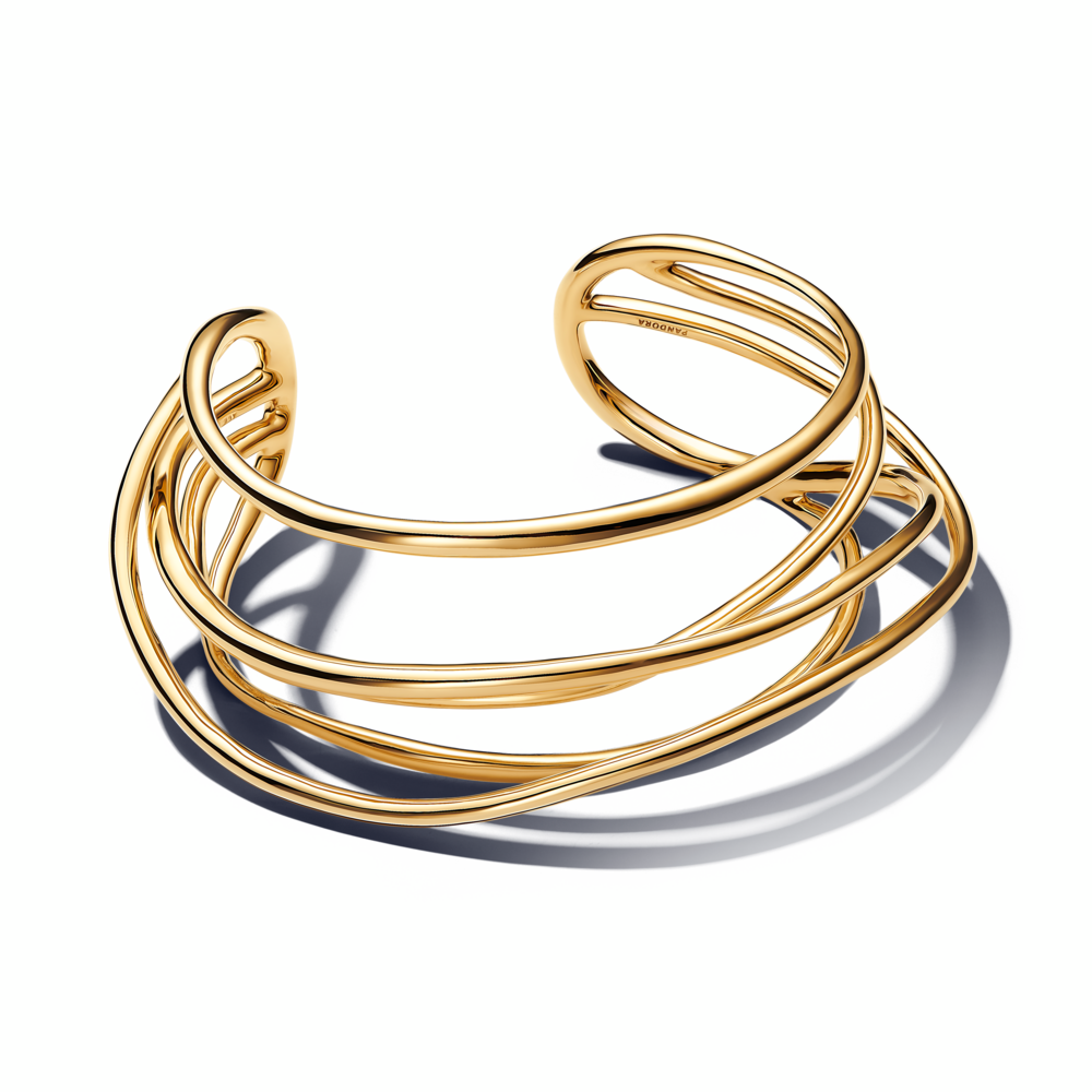 Organically wired 14k gold-plated open bangle