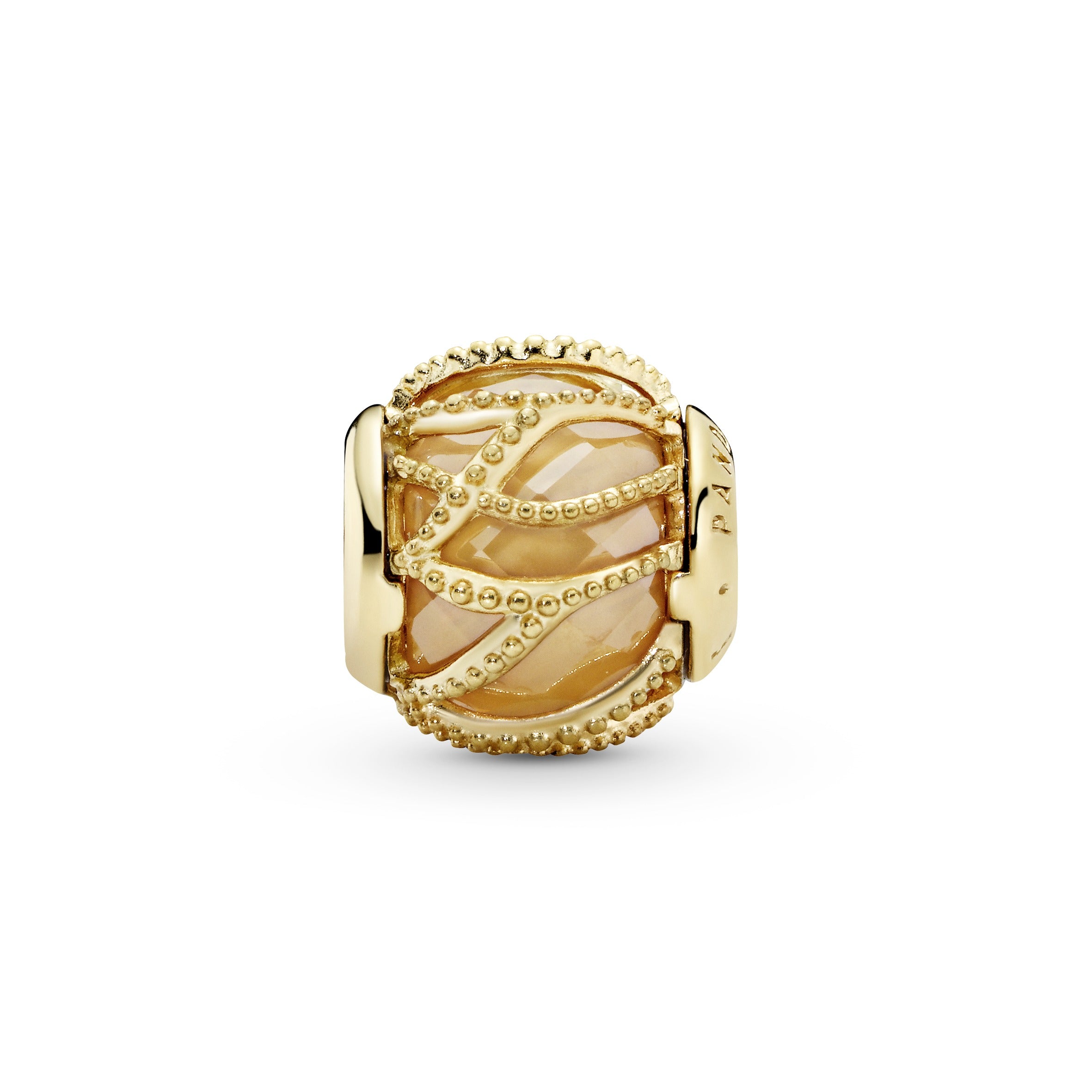 Add radiant golden tones to your Pandora Moments bracelet with this 14k Gold Plated charm. Made from our unique metal blend plated with 18k gold. it’s centred with a golden cubic zirconia that’s been faceted to reflect the light and wrapped in beaded lines of 14k Gold Plated . Give it meaning with a personal styling.
