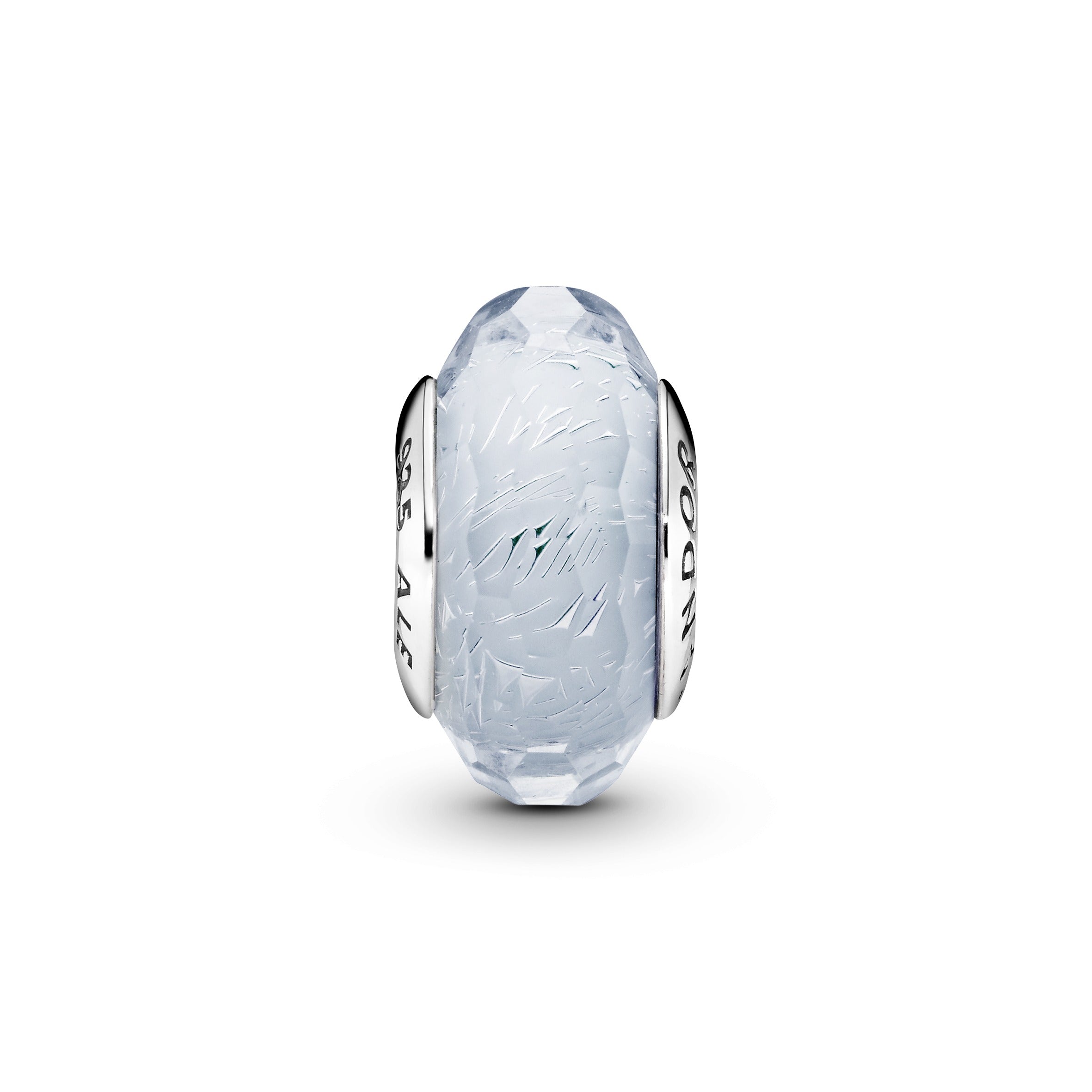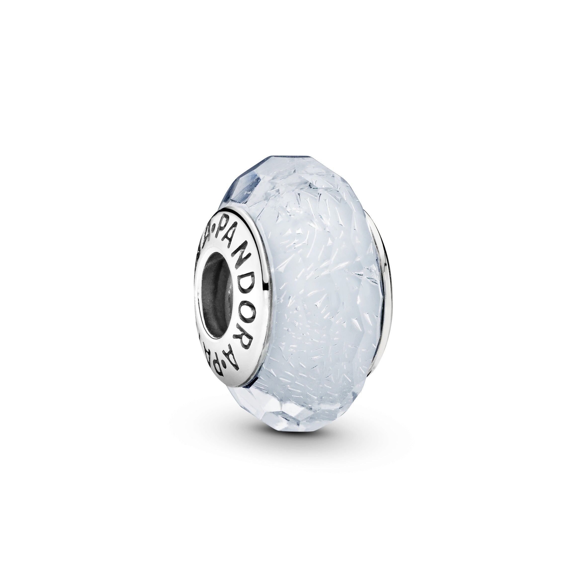 Put a cool spin on your style with this Murano glass charm. set on a sterling silver core. The glittering iridescent glass is faceted to catch the light from every angle. making your bracelet glow with subtle blue tones. It’s compatible with our Pandora Moments bangles and bracelets so you can style it together with other favourite charms from the collection.
