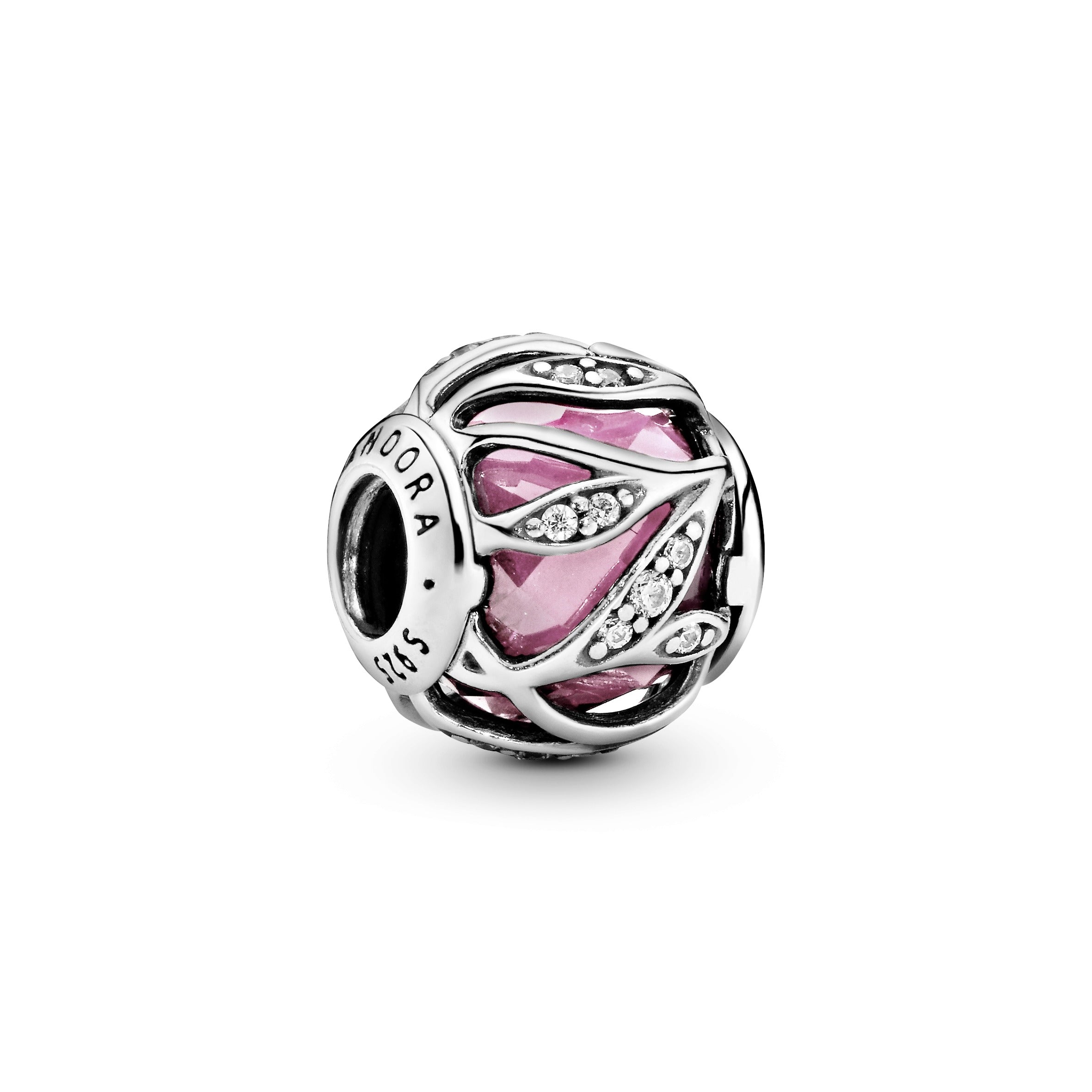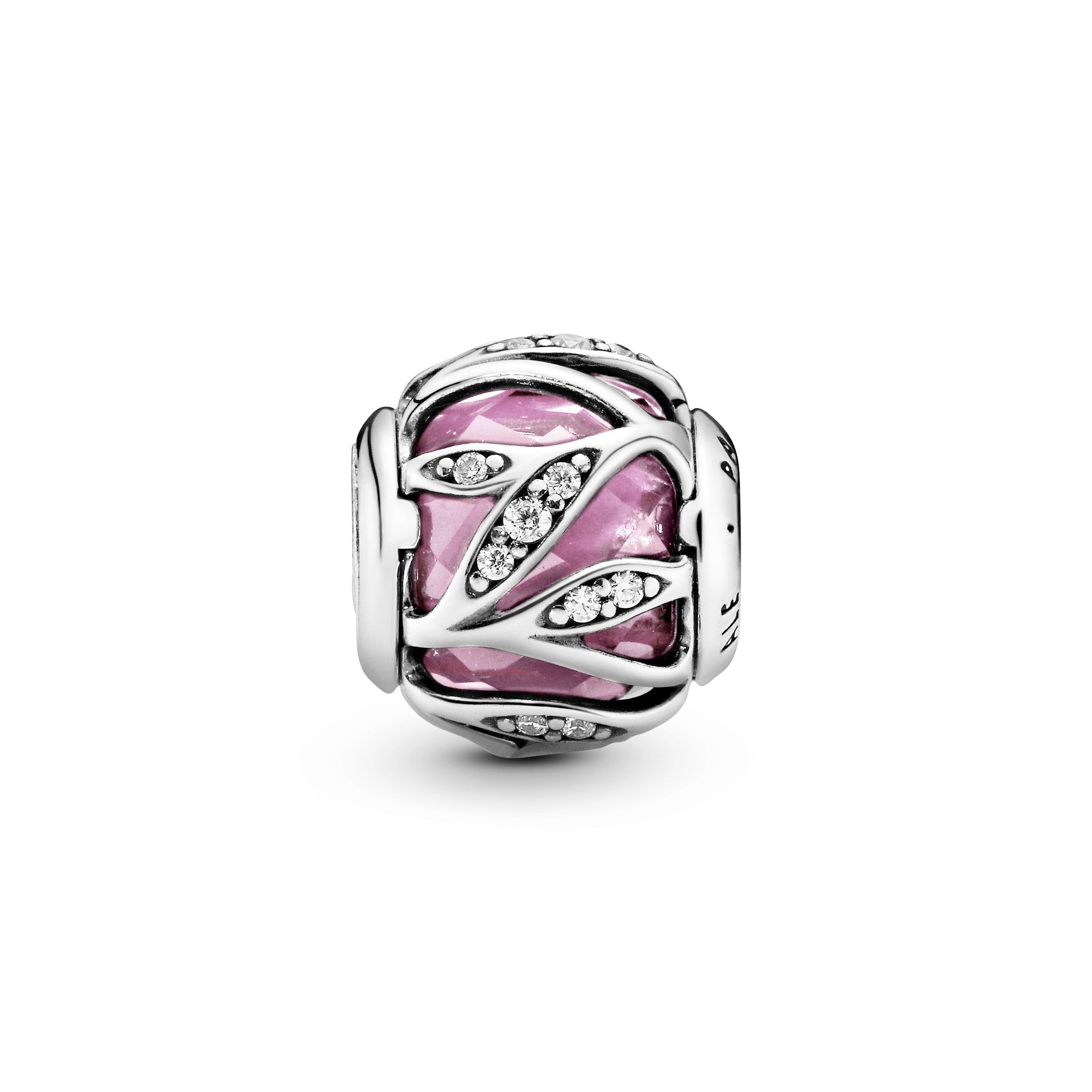 The abstract beauty of nature puts a captivating spin on your style. Centred with a faceted cubic zirconia in pretty pink. this sterling silver charm has cubic zirconia-embellished lines that look like leaves. It’s made for Pandora Moments carriers so add yours to a bracelet or bangle styling to give it personal meaning.