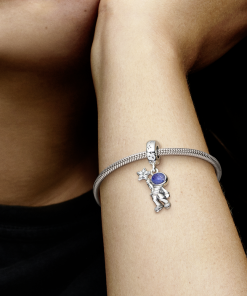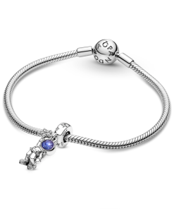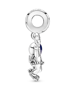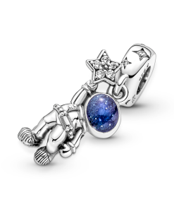 Explore the wonders of the galaxy with the Astronaut In The Galaxy Dangle Charm. In this sterling silver charm. a space explorer’s suit is decorated with microbeads and a clear cubic zirconia stone forms the oxygen tank. Blue enamel illuminates the visor of the helmet. The astronaut’s arm features a cut-out heart set with a sparkling stone and he holds a sparkling star set with clear cubic zirconia. This sweet starry charm is a reminder to reach for the skies.