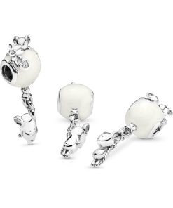 Detailed with adorable mice. this sterling silver dangle charm is a cute addition to personal bracelet styling. adding subtle movement to your look. Crafted from sterling silver. it’s shaped as a balloon layered with shimmering silver enamel that’s been applied by hand. A heart-shaped cubic zirconia completes the pretty piece. made for Pandora Moments bracelets.