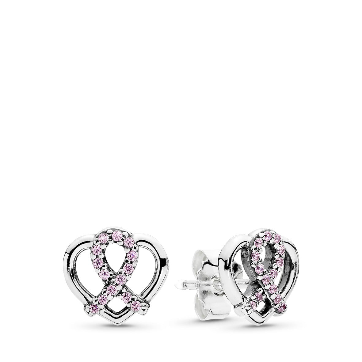 PANDORA’s dainty stud earrings feature a sterling silver heart base on which the pink stone Breast Cancer Awareness ribbon sits. These stylish and symbolic earrings are the perfect way to show that you are a proud survivor or support someone you love.