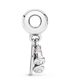 Explore the world one charm at a time with this sterling silver charm. Shaped as binoculars with enamel touches. the disc is engraved with the words Good times on the horizon. The double dangle charm sways gently. features sparkling cubic zirconia and glistens as it catches the light. Wear it on your favourite Pandora Moments bracelet or add it to a necklace to set the direction of your travel dreams.