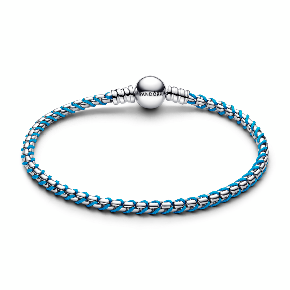 Braided sterling silver box chain bracelet with turquoise textile cord