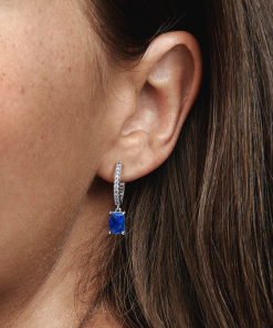 Do you find yourself drawn to both classic and contemporary styles at once? Wear a set of sparkling hoop earrings that bring together the best of both worlds in a playful and daring way. Our sterling silver hoop earrings with rectangular radiant-cut princess blue man-made crystals capture timeless elegance. combining vibrant and clear stones to create a modern and elevated style you can wear every day.