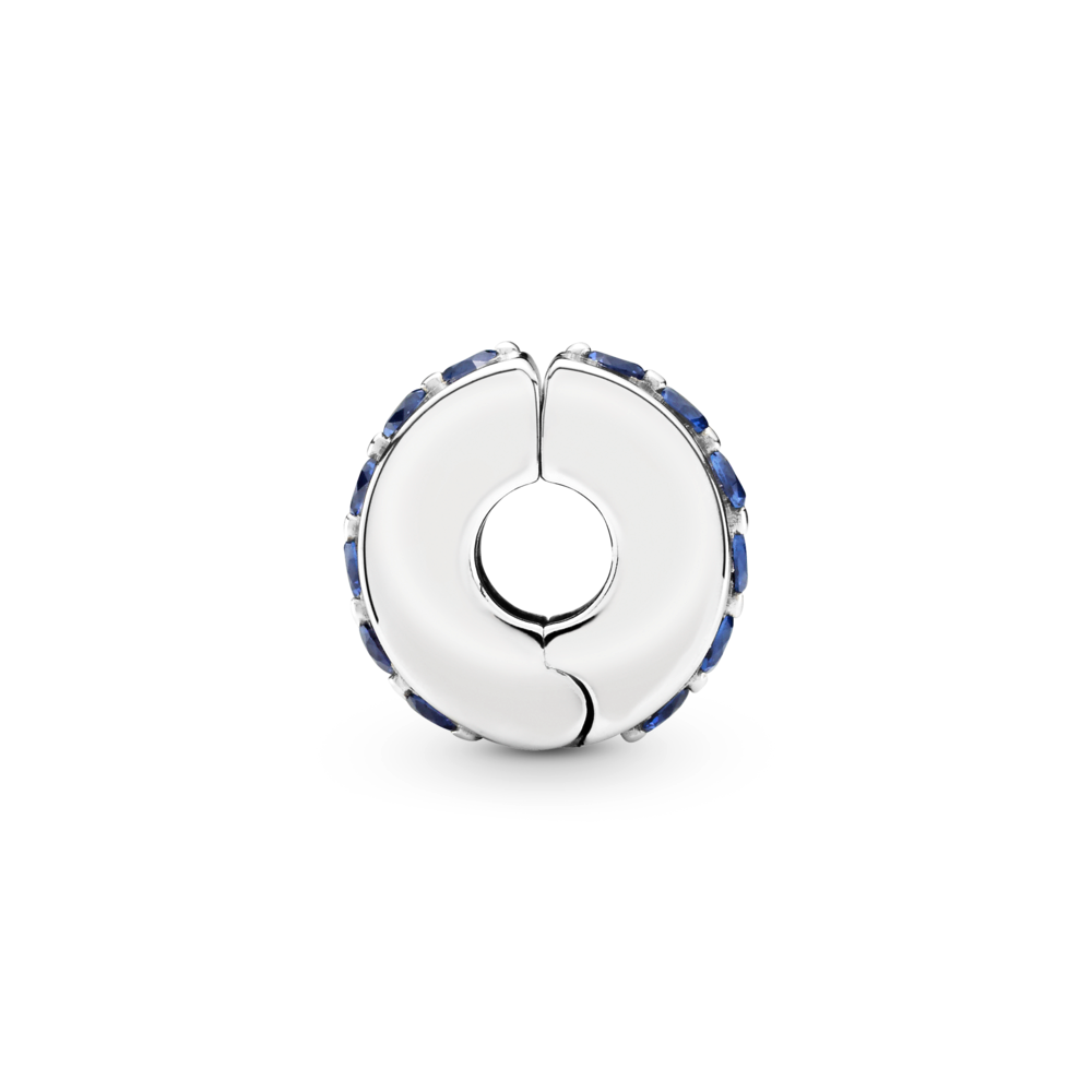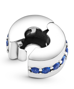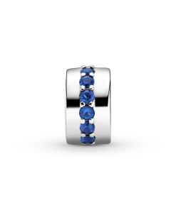 Always shine bright with the Blue Sparkle Clip Charm. Hand-finished in sterling silver. this classic round design features a centred row of shimmering blue stones. Style with other sterling silver pieces on your go-to Pandora Moments bracelet to separate out your charms and add a subtle hint of colour.