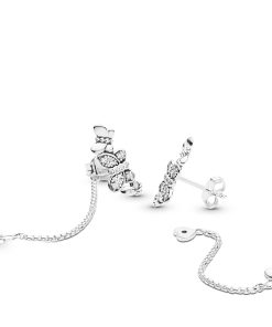 The butterfly is a symbol of change. hope and life and this pair of stud earrings is a powerful way to bring that into your style. A modern rendition of the classic drop earring. these versatile earrings are fitted with detachable jackets that let you style them your way. Embellished with cubic zirconia. the sterling silver studs can be worn alone or together with the corresponding chain that is detailed with butterfly ends.