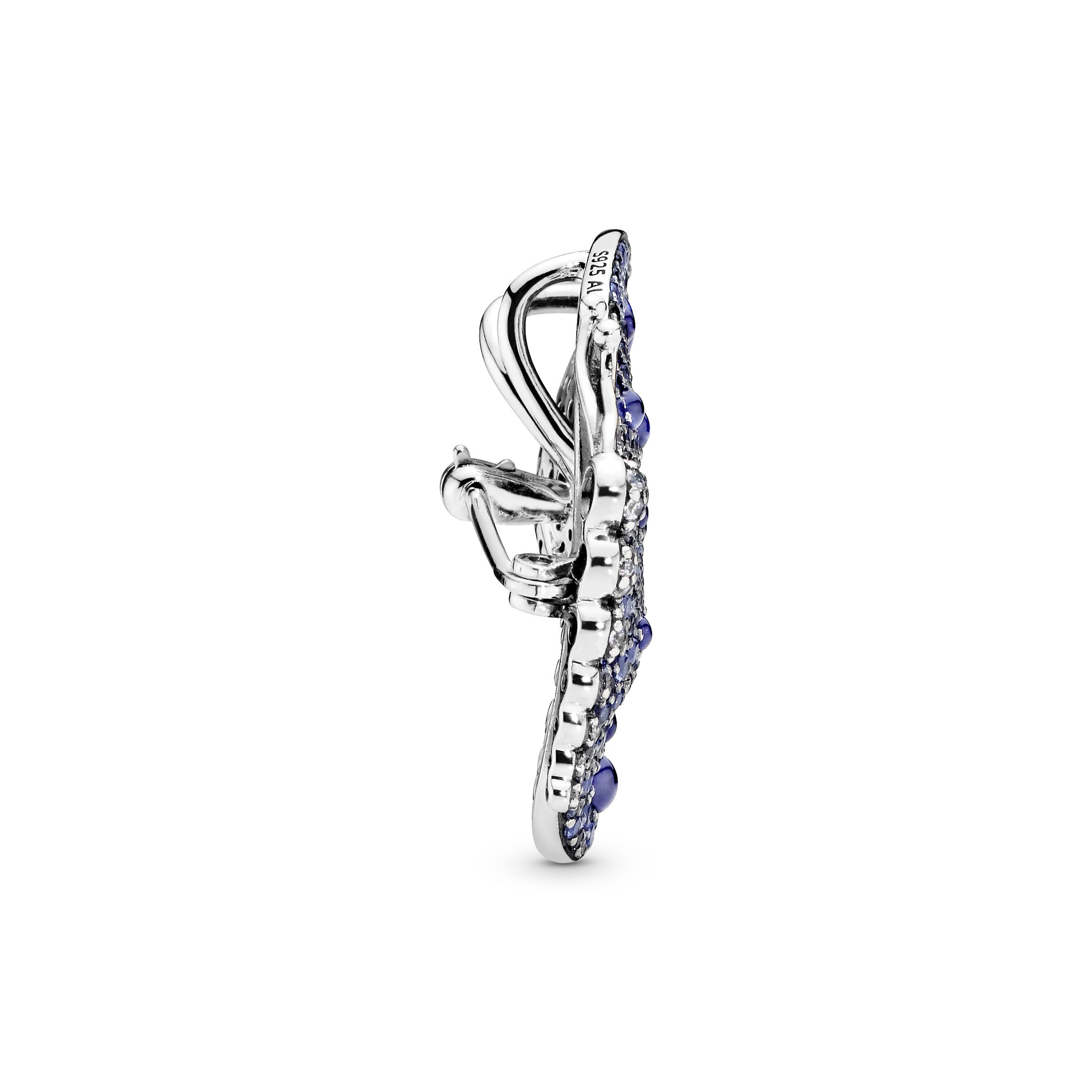 Go big and bold with this sparkling butterfly brooch full of good luck symbolism. A symbol of transformation. the butterfly makes a powerful statement as a brooch. Hand-finished in sterling silver. it is set with royal blue crystals and glittering clear cubic zirconia stones in varying sizes for high octane glamour.