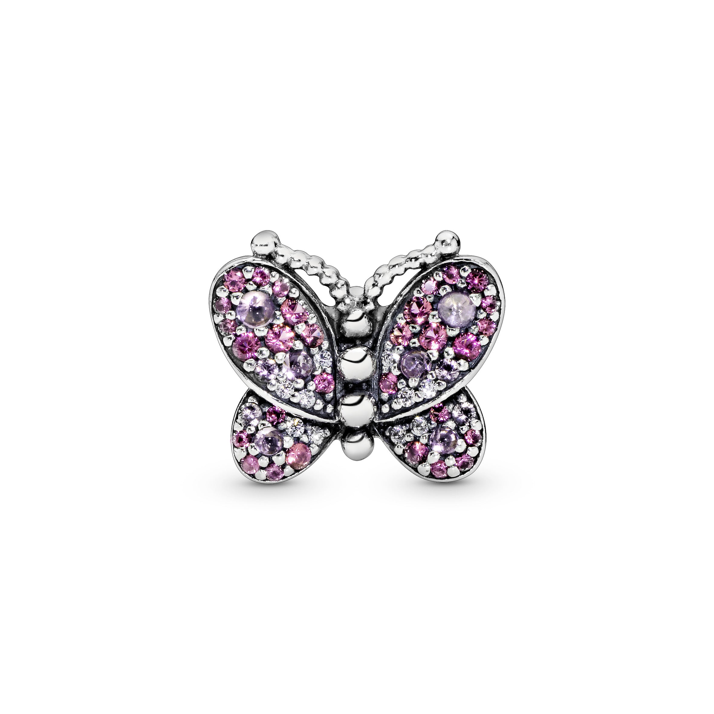 Channel the transformative power of the butterfly with this pink charm. Set with cabochon-cut crystals and cubic zirconia stones in tonal hues. the sterling silver makes a glittering centrepiece on any Pandora Moments charm bracelet. Wear it as part of your style story. showcasing all the things you love and let the pink tones add a pop of colour to your look.