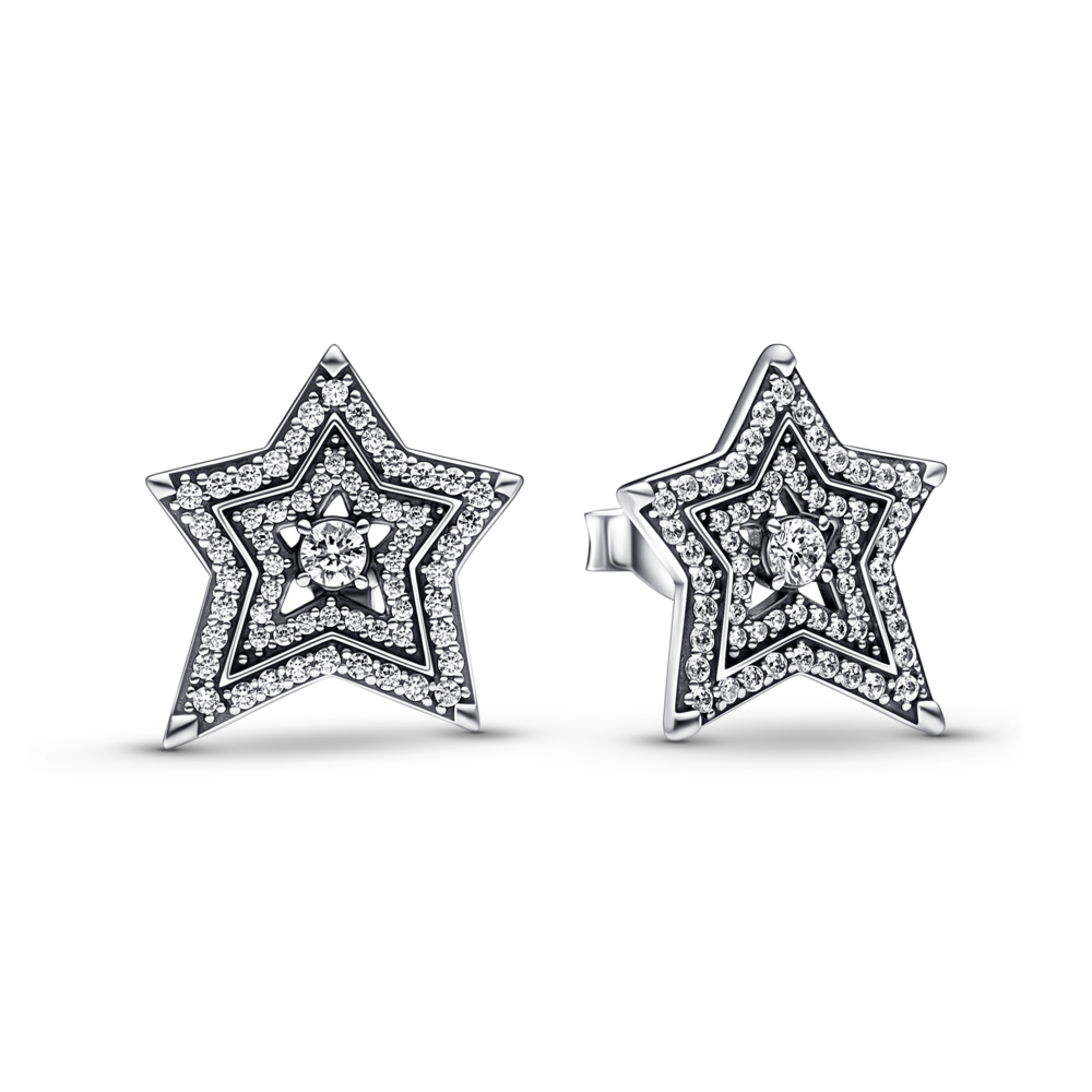 Our Celestial Asymmetric Star Stud Earrings will add a starry sparkle to any look. These statement earrings each feature an asymmetric star in polished sterling silver. carefully detailed by hand with rows of clear cubic zirconia pavé and a cut-out star containing a single stone which appears to float at the centre. Inspired by the beauty of the night sky. add these pieces to your look or gift them as a reminder that organic. asymmetrical imperfection is beautiful – and to always reach for the stars.