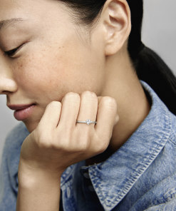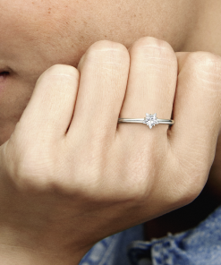Bring starry sparkle to your outfits with the Celestial Sparkling Star Solitaire Ring. Inspired by celestial beauty. the sleek sterling silver ring features a centre star-shaped clear cubic zirconia stone and is complemented by two asymmetric stars and the word Dreamer engraved inside the shank. The dazzling design looks equally stunning worn on its own or layered with contrasting Pandora rings in different metal tones. A classic and sophisticated addition to any collection.