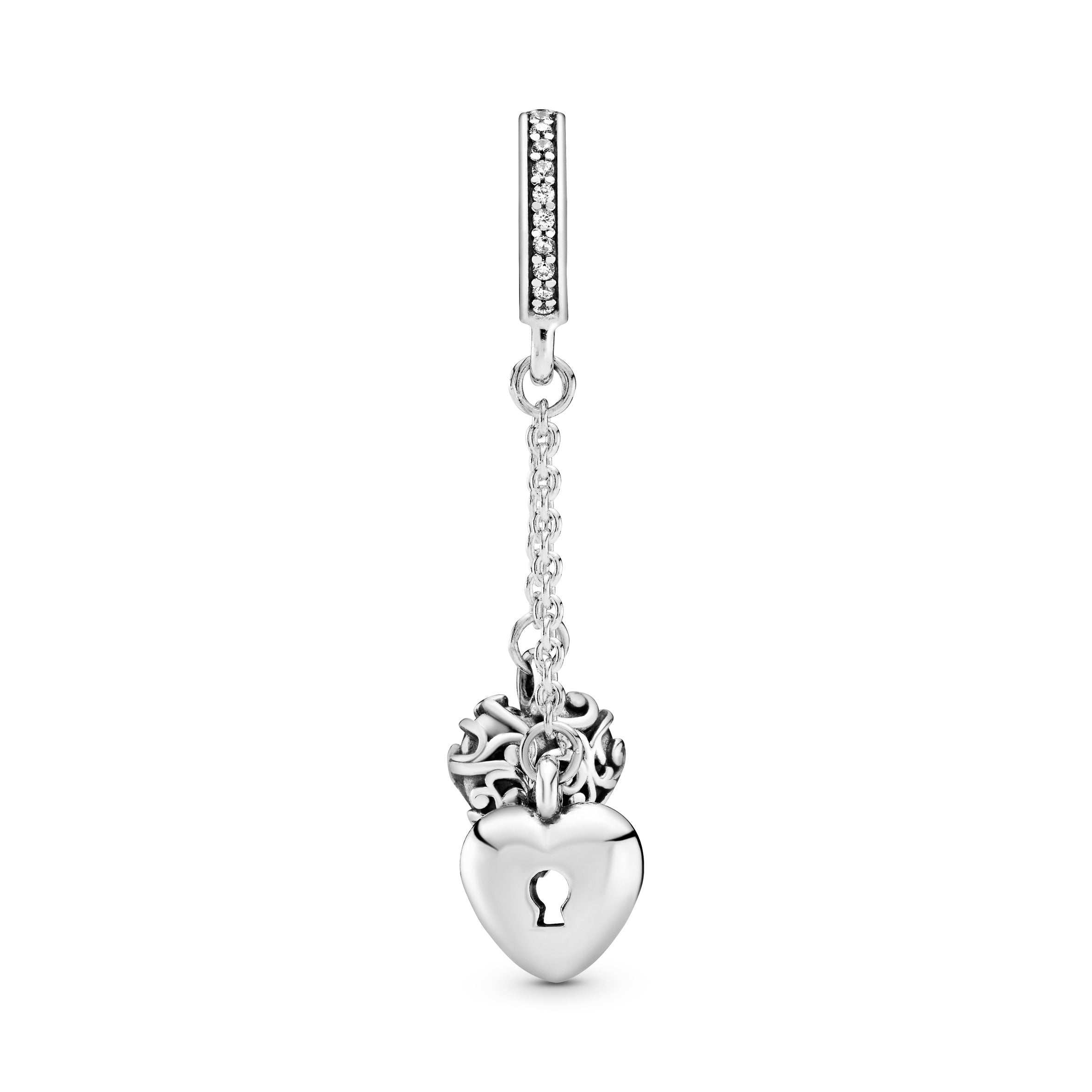When you want to add meaning and movement to your Pandora Moments bracelet. reach for this dangle charm. Strung with contrasting heart padlocks on swaying chains and accented with cubic zirconia. the sterling silver design doubles as a necklace pendant.
