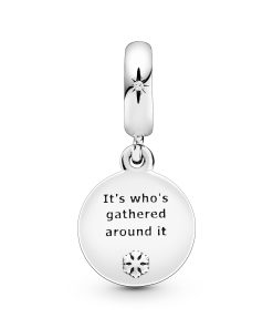 Channel the true spirit of Christmas with our sterling silver dangle charm. Engraved with It’s not what’s under the tree that matters on the underside and It’s who’s gathered around it on the back. the meaningful design is topped with a snowy scene complete with a cubic zirconia star on the bail. Made for Pandora Moments bracelets. it’s the ideal piece to wear or share.