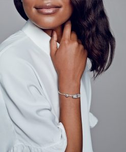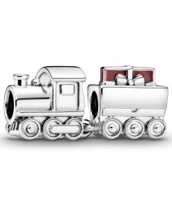 Put a festive spin on Pandora Moments bracelets or bangles with our adorable Christmas Train charm. The sterling silver design is shaped with two carriages. one of which is filled with a red enamel present ready for delivery. We think it looks wonderful on a Christmas themed styling. Full speed ahead!