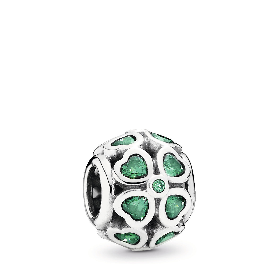 Add a little luck into your bracelet with PANDORA’s stunning green stone and silver charm. Decorated with heart-shaped bezel-set cubic zirconia stones. this lucky clover charm is also a thoughful way to wish good fortune to someone special.