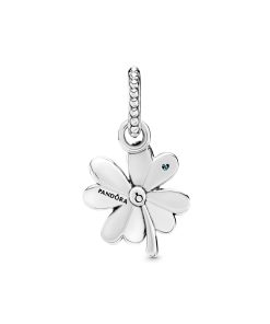 Our good luck pendant is crafted in sterling silver and shaped as a four-leaf clover. The dangling. sculptural design is set with a single green crystal and detailed with a heart-shaped stem. String yours on a necklace or add it to a hoop earring to show a new side to your style story. You can also thread it onto your favourite Pandora Moments charm bracelet.
