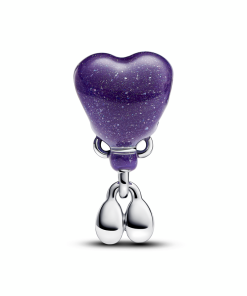 Baby boy balloon sterling silver charm with color changing purple to light blue and black enamel