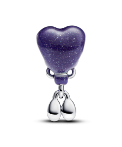 Baby girl balloon sterling silver charm with color changing purple to light pink and black enamel