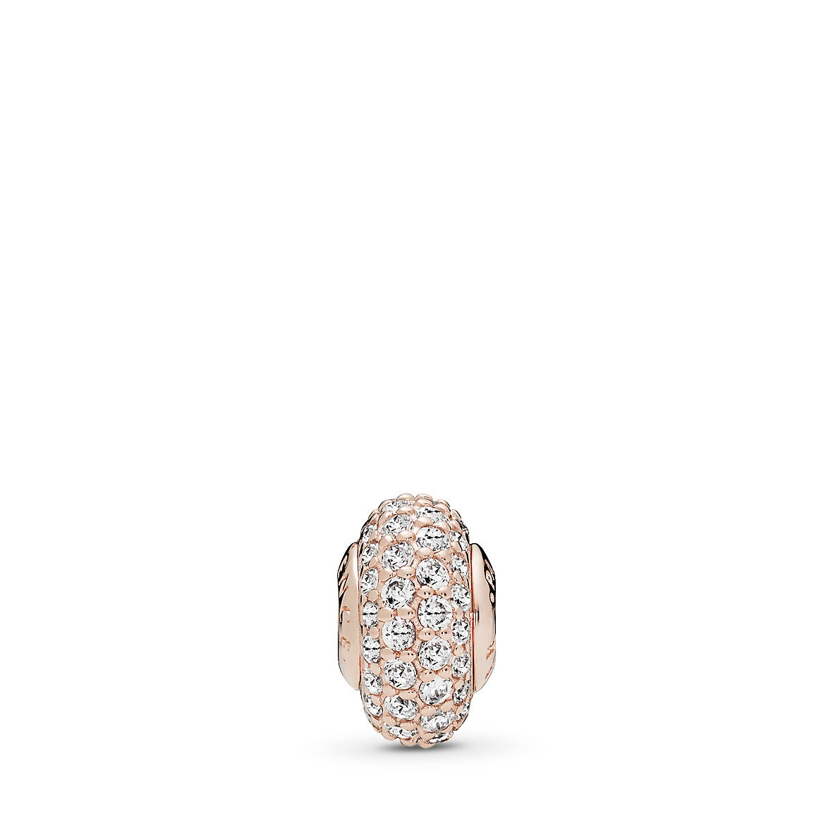 Part of our Pandora ESSENCE COLLECTION of slender carriers and small charms that represent your values. this spacer charm is set with cubic zirconia to create a shimmering adornment to bracelets. bangles and necklaces. It’s made from Pandora Rose. our unique metal blend with 14k rose gold plating. and is detailed on the side with the value it represents: confidence. Wear it as a part of a meaningful styling as a reminder to meet the world with confidence.