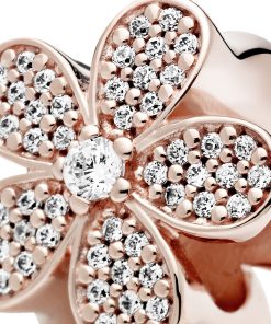 The daisy is a symbol of new beginnings. Create a fresh new look with this glittering flower charm and let it inspire you to live your best life. The charm is daisy-shaped and embellished with 100 micro pavé-set cubic zirconia. The charm is hand-finished in Pandora Rose. our 14k rose gold-plated unique metal blend. Wear it your way to bring pretty blush tones and personal meaning to your look.