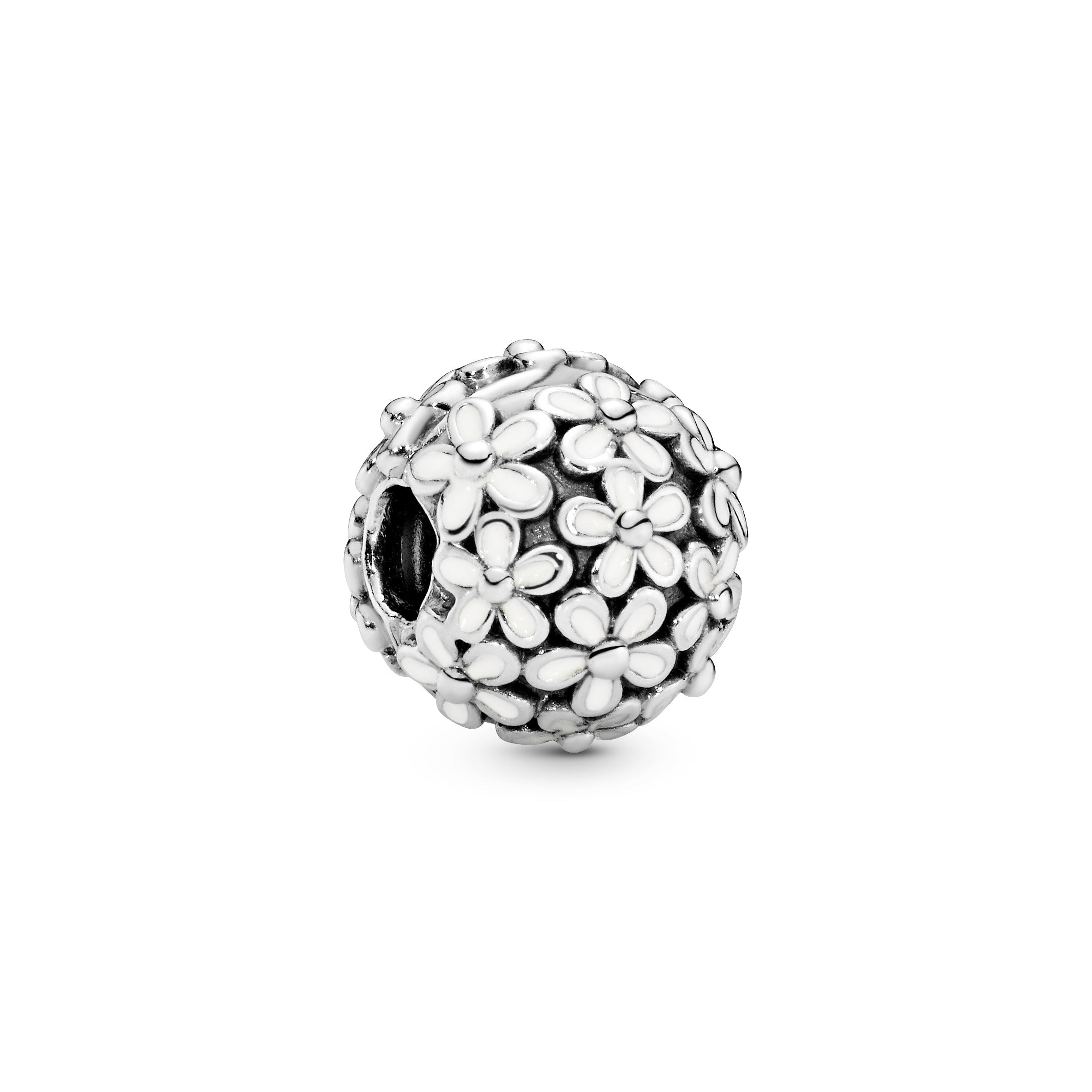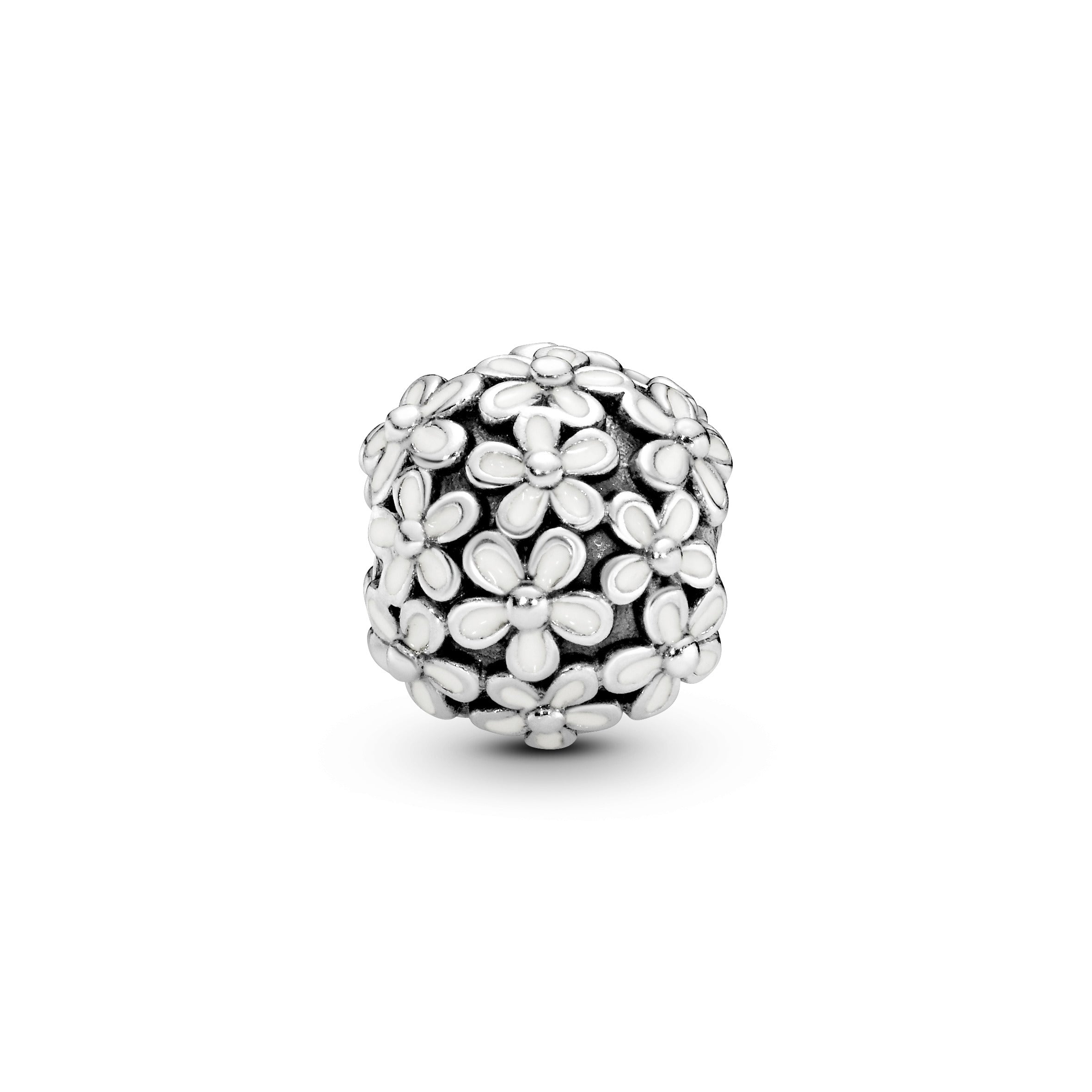 Channel the feeling of warm summer days with grass between your toes with this flower charm. Crafted to resemble a field of daisies. this sterling silver design is decorated with white enamel that’s been applied by hand. Made for Pandora Moments bracelets. it’s a pretty addition to a style that speaks of who you are.