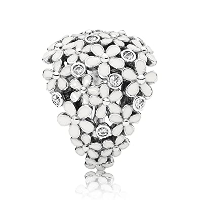 Daisy silver ring with cubic zirconia and white enamel