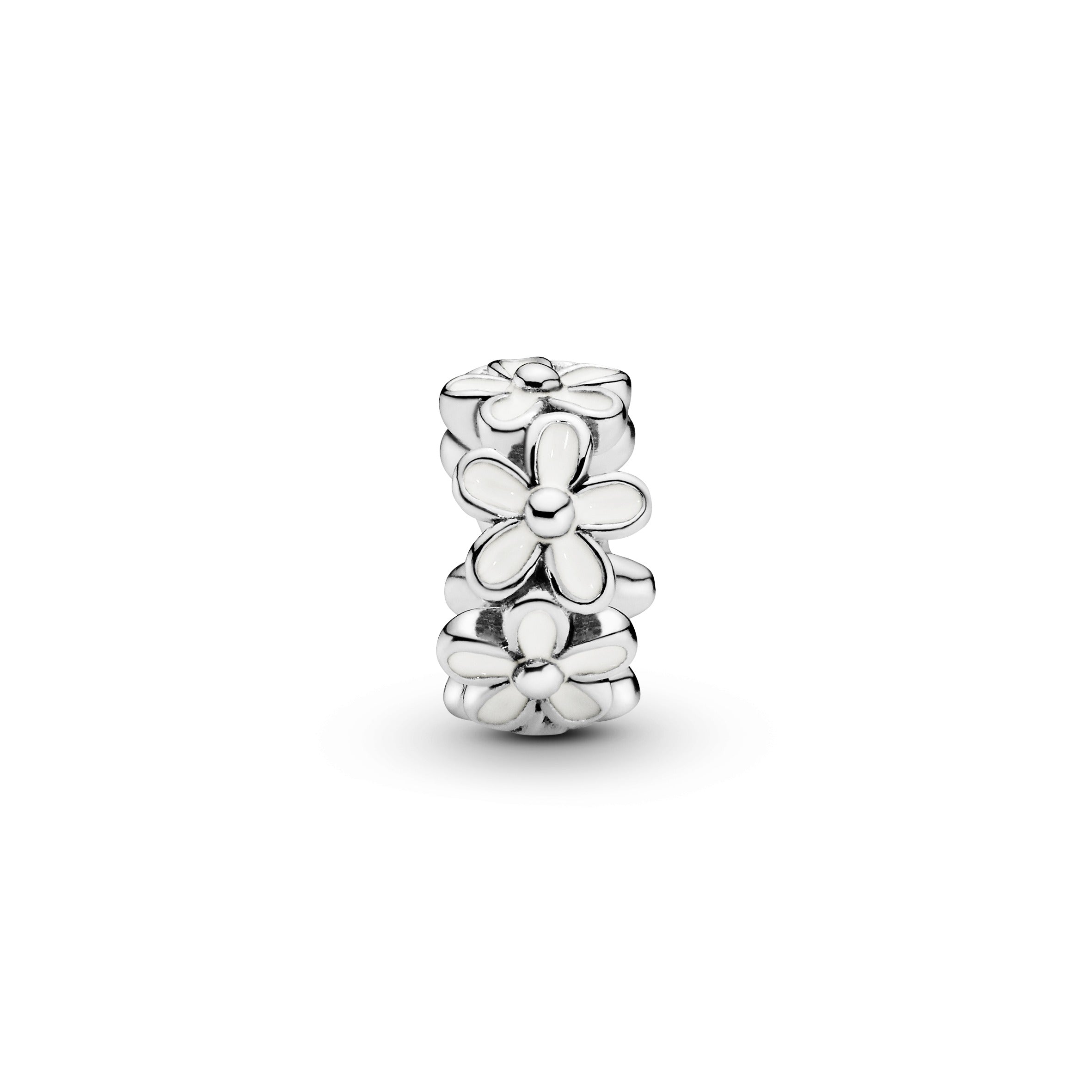 Daisies are a symbol of innocence and purity. freedom and fortitude. Encircled with white enamel daisies in a nod to the popular daisy chain. this pretty spacer charm in sterling silver lends natural appeal to your Pandora Moments bracelet. Add the simple design to your look to represent something you love.