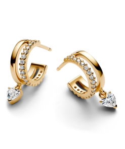 Heart 14k gold-plated hoop earrings with clear cubic zirconia