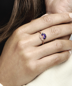 Turn up the flower power in our Deep Purple Pansy Flower Ring. Set in 14k rose gold plating. our pansy features two petals covered in sparkling pavé and three petals hand-painted in rich enamel. making every flower completely unique. An organically shaped band mimics a real stem and evokes the freedom of spring. The newest flower to grace our garden. pansies symbolise love in its many forms. Wear yours as a reminder of all the loved ones in your life.