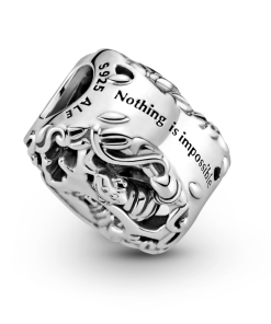 Never forget your sense of wonder with the Disney Alice in Wonderland Cheshire Cat & Absolem Caterpillar Charm. This sterling silver charm depicts the gate into the Wonderland forest. Alice in Wonderland peeking over a mushroom at the caterpillar Absolem. the Cheshire Cat sitting on a tree and a ‘Nothing is impossible’ engraving. Intricate. detailed and whimsical. this Alice in Wonderland charm captures the magic and mystery of this Disney world.