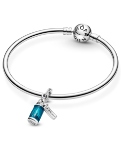 Celebrate an iconic character with the Disney Alice in Wonderland Drink Me Dangle Charm. Representing an unforgettable scene from the Disney film. this sterling silver charm features Alice in Wonderland with lifelike details – including face. hair. hands. apron. feet and dress – inside a bottle made of blue semi-transparent enamel. A dangling tag features an engraved ‘Always’ on one side and ‘Curious’ on the other. Wear this charm as a reminder to explore the world with wonder and curiosity.