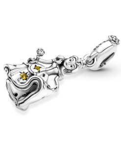 Tell a tale as old as time with this charm featuring a beloved scene from Disney’s Beauty and the Beast. The hand-finished sterling silver charm brings to life the ballroom dance where Disney’s Belle and the Beast share their first waltz. Brilliant-cut. man-made yellow stones decorate Belle’s dress and the bail includes a stone-set raised rose. Be inspired and transported back to the magical moment by this delicate and enchanting charm.