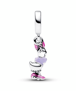 Disney Daisy Duck sterling silver dangle with holographic pink. purple and black enamel