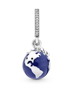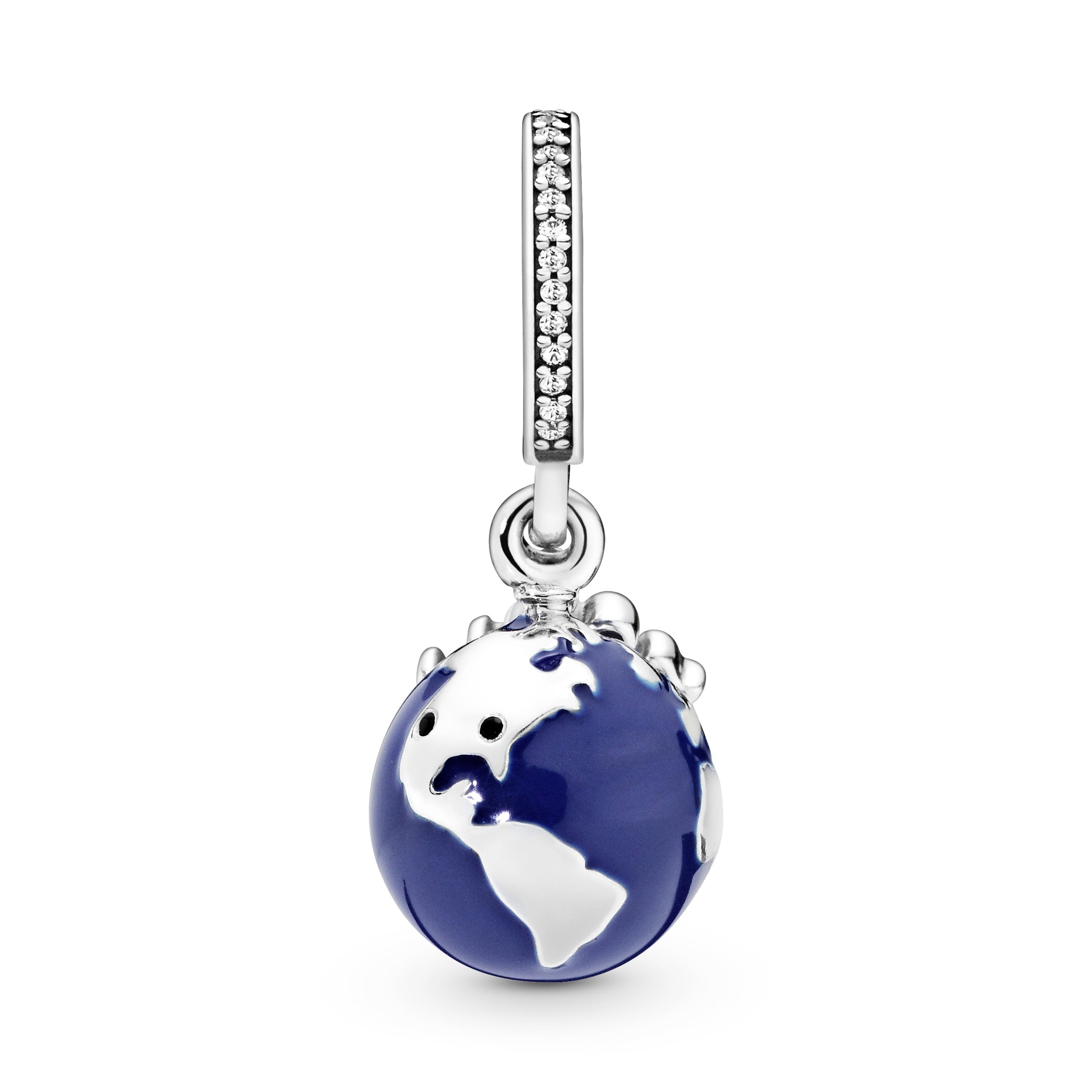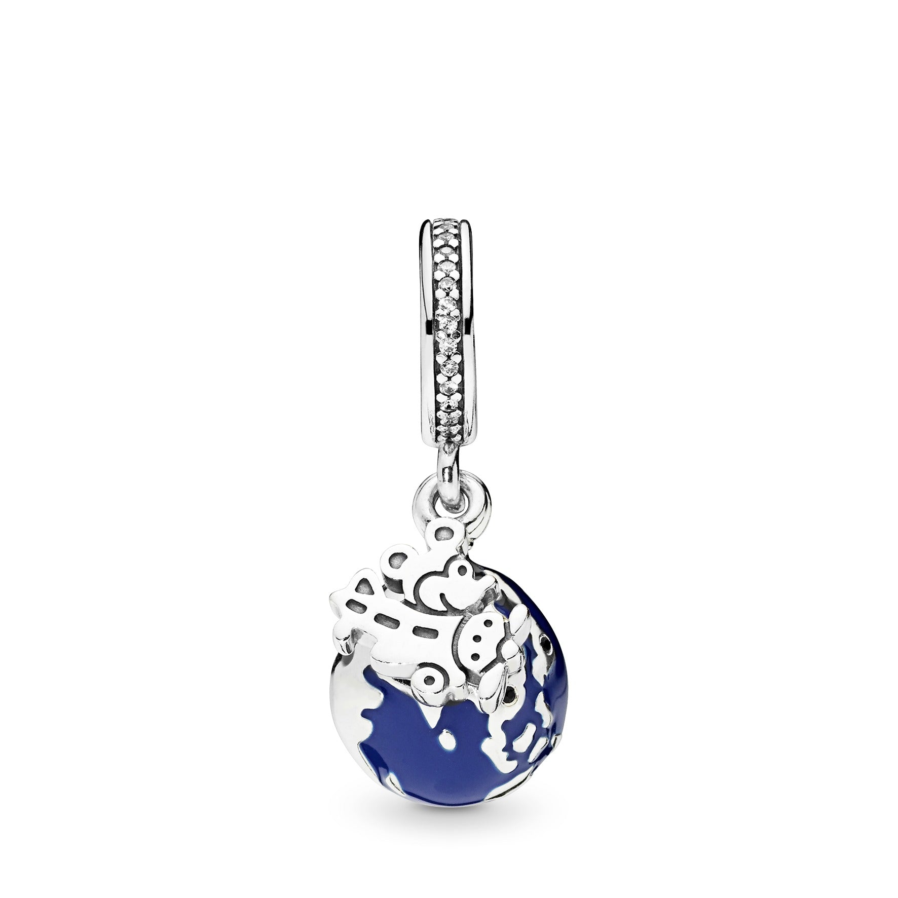 Disney Globe silver dangle with blue enamel. clear cubic zirconia and black crystal