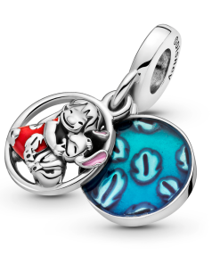 Gift your best friend the Disney Lilo & Stitch Family Dangle Charm. Hand-finished in sterling silver. the openwork front dangle includes Disney’s Lilo and Stitch hugging. Lilo’s dress is decorated with hand-applied red enamel and raised sterling silver leaf details. Stitch’s ear features hand-applied purple enamel. The back disc is covered in hand-applied shaded transparent blue enamel with raised leaf details. The engraving Family means no one gets left behind features on the reverse. Surprise your close friend with this style to celebrate your connection.