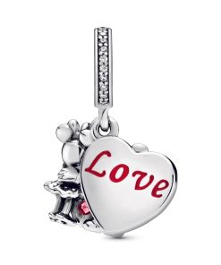 Put the love in your style with Disney sweethearts Mickey and Minnie Mouse. immortalised on this sweet dangle charm. The sterling silver design is detailed with hand-applied red enamel hearts and glittering cubic zirconia touches. Wear it as a reminder of a loving relationship. It also makes a thoughful gift to represent a story of love.