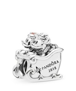 Disney Mickey Mouse and Minnie Mouse ride in a sleigh packed with Christmas presents on this sterling silver charm. Red enamel and clear stones add a festive feel to the iconic scene.