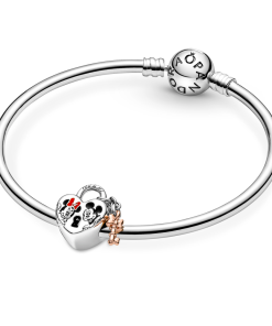 This Disney Mickey Mouse & Minnie Mouse Padlock Charm is a celebration of everlasting love. featuring one of the world’s most beloved couples. The adorable dangle charm is hand-finished in sterling silver. in the shape of a padlock. decorated with Disney’s Mickey and Minnie Mouse and completed with a 14k gold-plated key. An engraving of You & Me is written across the top of the lock. making this Disney x Pandora charm a special jewelry gift for a loved one. or to yourself. to show how much you care.