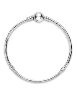 Make Pandora Moments even more magical with this Disney snake chain bracelet. Finely crafted in sterling silver. it features a ball clasp embellished with subtly shimmering Mickey Mouse silhouettes – a stunning tribute to Disney’s iconic character. Show it off on its own. or fill it with your favourite Pandora Disney charms.