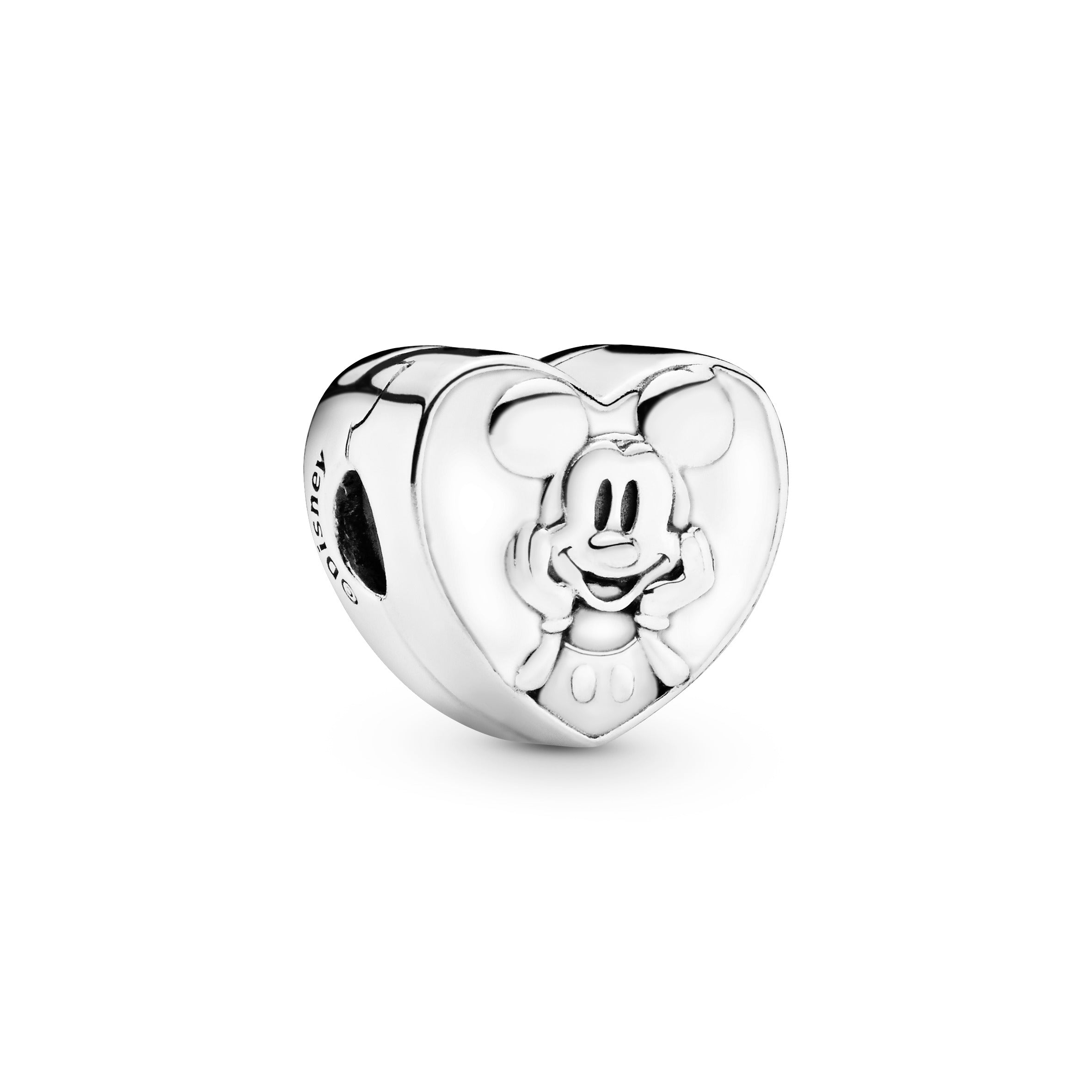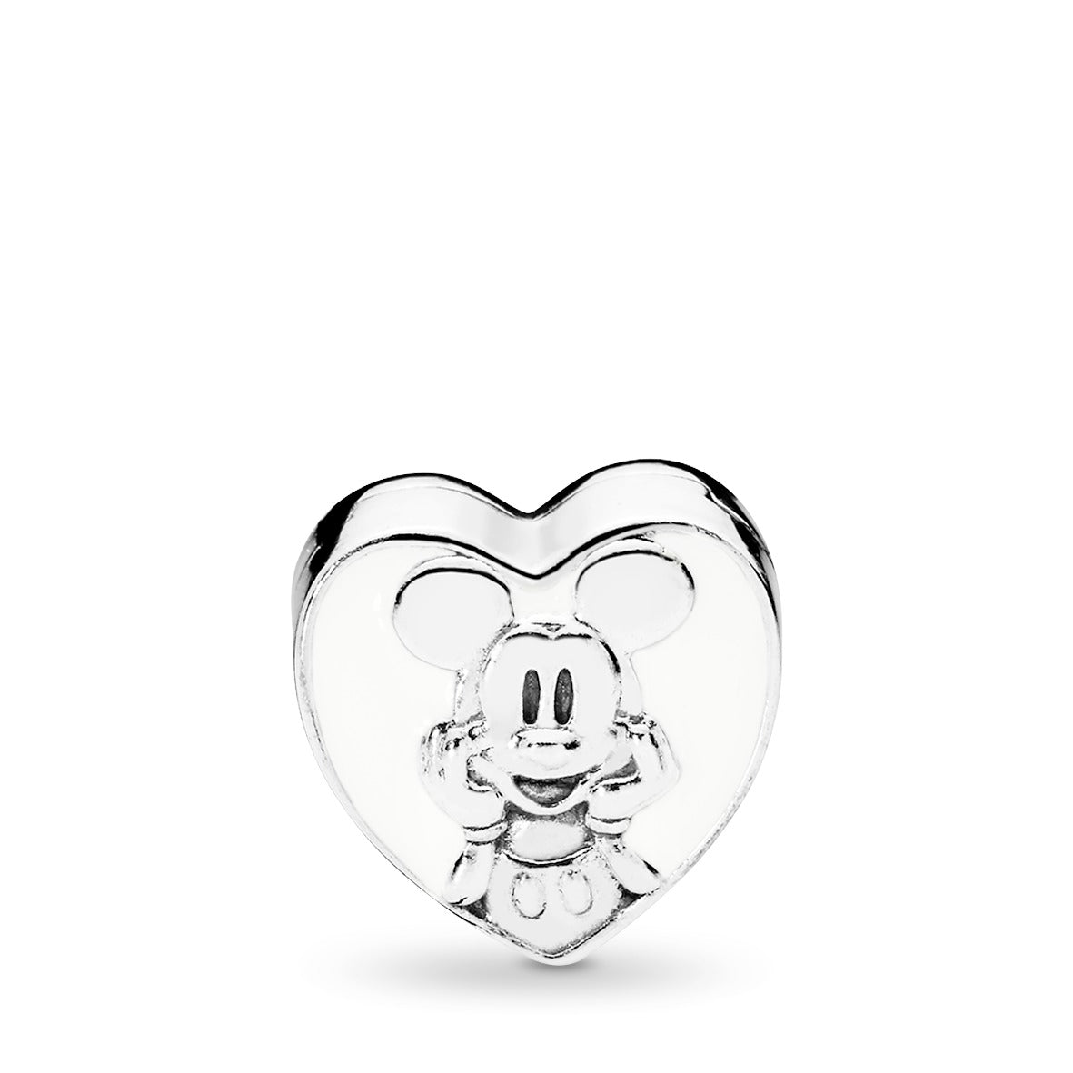 Wear the things you love close to your heart. Like this Disney Mickey Mouse portrait clip charm. expertly crafted in sterling silver and detailed with the face of the famous character set against a crisp white hand-applied enamel background. The heart-shaped style. made for Pandora Moments bracelets and bangles. makes a thoughtful gift for someone who loves Disney. and the vintage look is perfect for channeling childhood memories.