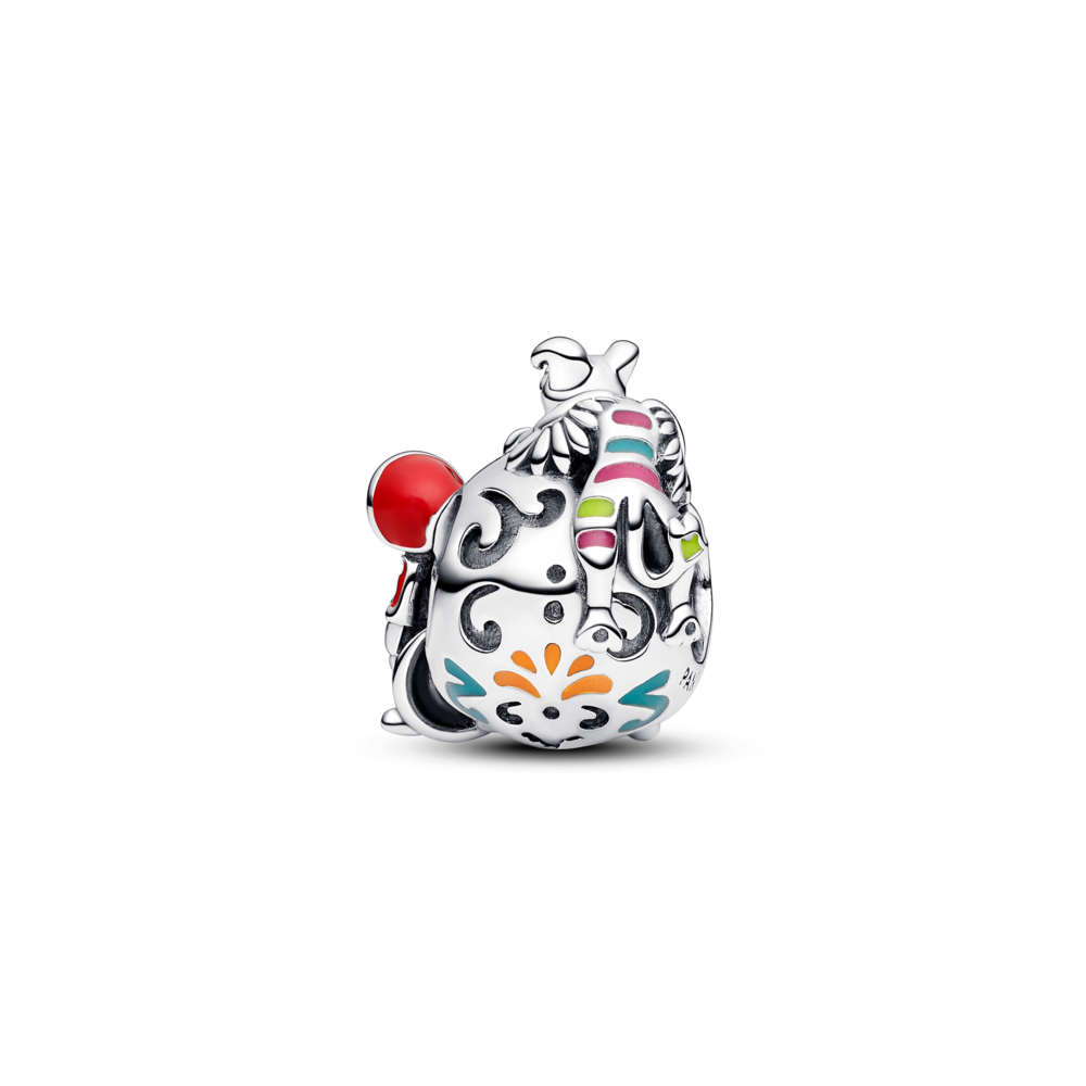 Disney Pixar Coco skull sterling silver charm with red. green. orange. yellow. pink and glow in the dark enamel