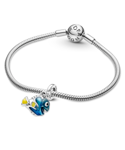 Channel your inner optimist with Pixar’s Dory. This sterling silver dangle charm features the much-loved forgetful fish brought to life with hand-applied enamel in transparent blue. yellow and black. with raised detailing on her fins and a characteristic sunny smile. Her articulated tail can move from side to side like she’s really swimming. Add this charm to your line-up as a reminder to stay focussed on your goals – and never forget to look on the bright side!