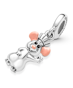 Follow your dreams with Pixar’s Remy. This sterling silver dangle charm features Remy from Disney and Pixar’s Ratatouille wearing his chef’s hat and making a chef’s kiss gesture. Hand-applied pink enamel colours his ears and nose and black enamel brings his eyes to life. Style this charm on your Pandora jewellery as a reminder to follow your heart and never give up.