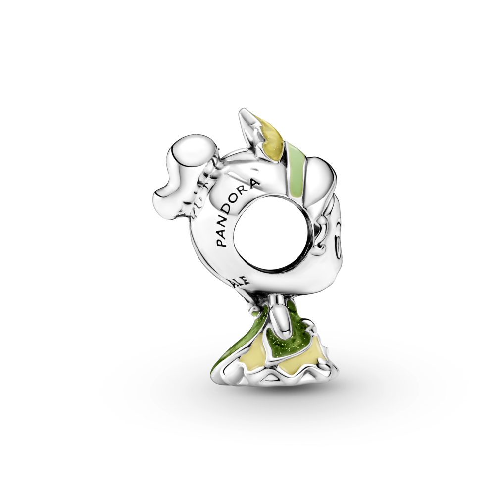 Channel your inner princess with the Disney Princess And The Frog. Tiana Charm. Hand-finished in sterling silver. this charm includes engraved facial features and glittery green and yellow hand-applied enamel. giving Tiana’s dress and tiara vivid pops of colour. Inspired by Tiana’s goal-oriented personality and zest for life. this Princess Tiana charm will remind you of one of your favourite Disney Princess moments. making it an iconic addition to any collection by bringing a playful touch to your everyday style.
