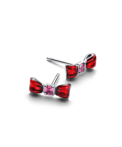 Disney Snow White bow sterling silver stud earrings with fuchsia rose crystal and red enamel
