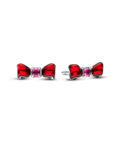Disney Snow White bow sterling silver stud earrings with fuchsia rose crystal and red enamel
