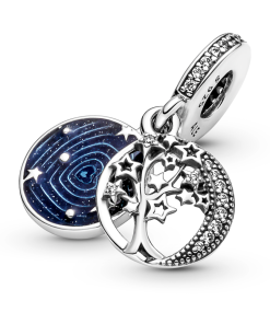 Add a little night-time magic to your daytime look with the Double Dangle Tree & Galaxy Moon Charm. The earthly beauty of a family tree takes on a new celestial form in this statement charm featuring a mix of cut-out and raised star-shaped leaves adorning the front disc. and raised stars and planets depicting a galaxy on the back disc. Keep the wonderful mystery of the earth and the night’s sky close to you.