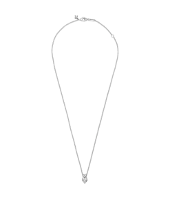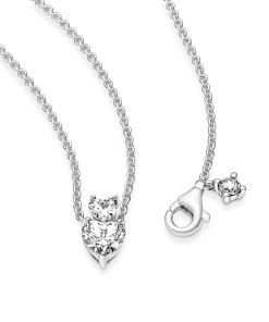 Two hearts beat as one in this timeless design. The Double Heart Pendant Sparkling Collier Necklace features two heart-shaped stones of different sizes. the smaller of which connects the pendant to the necklace. A small round cubic zirconia stone sparkles beside the lobster clasp. The chain length is adjustable. making this a versatile finishing touch to your outfit.